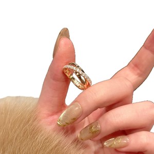 新款三圈交叉镶嵌排钻戒指女小众设计感时尚个性指环气质轻奢百搭