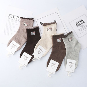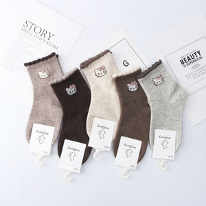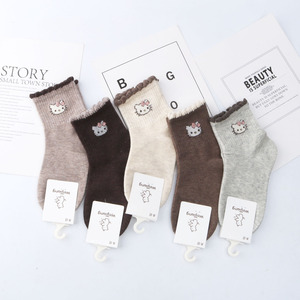 爱嘀嗒儿童袜子秋冬款韩版咖色复古可爱动漫卡通猫女童中筒运动袜
