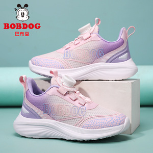 巴布豆女童鞋子2025春秋款网面透气儿童运动鞋中大童软底轻便跑步