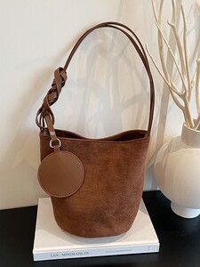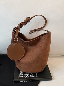 2025新款韩版时尚水桶包包女森萌感小众手提包复古通勤单肩腋下包
