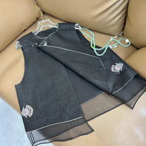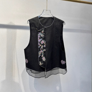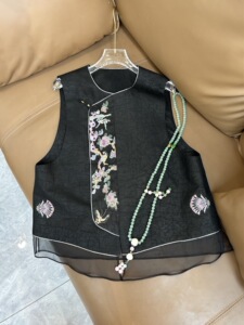 上新真丝香云纱绣花拼接国风马甲2025秋款复古盘扣背心上衣不退换
