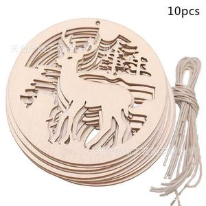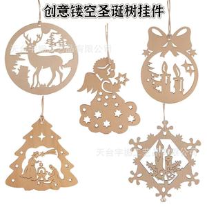 跨境装饰挂件木质雕刻雪花挂件镂空木片木制装饰木片圣诞树圣诞节