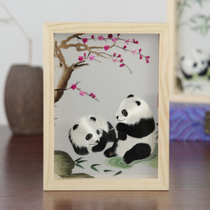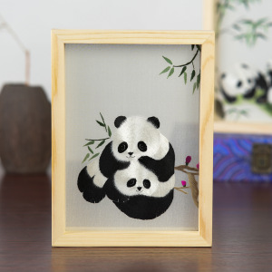中国风蜀绣手工双面刺绣熊猫中式方形摆件特色伴手礼送礼外国人