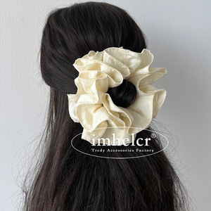 韩国新款纯色木耳边质感小蛮腰大肠发圈简约时尚百搭马尾发绳发饰