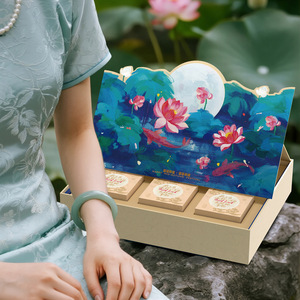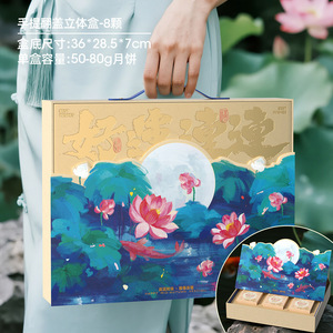 手提立体翻盖盒8颗;好运连连中秋月饼包装