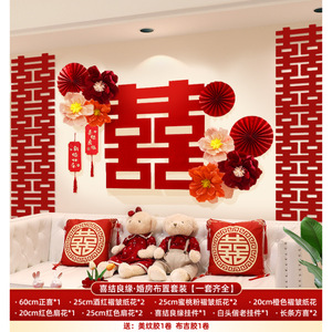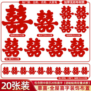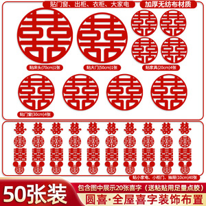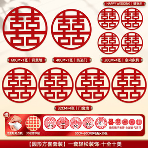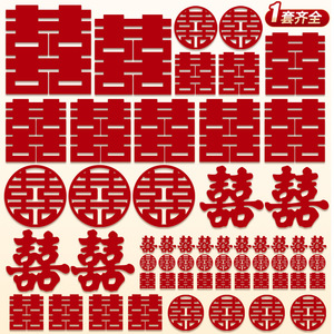 婚房布置喜字装饰结婚专用卧室囍字门贴楼梯台阶婚礼喜字贴套装