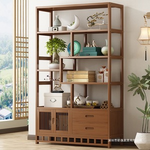 博古架新中式茶室置物架茶叶收纳架非实木隔断多宝阁客厅摆件架子