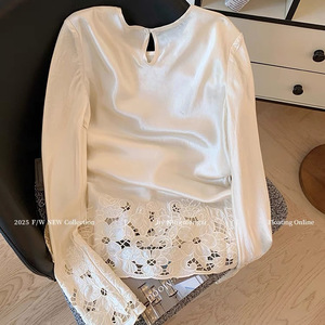 新中式国风下摆镂空上衣2025新款春季简约圆领时尚内搭外穿打底衫