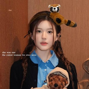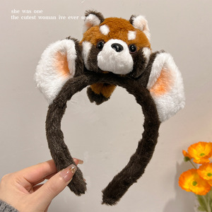 可爱小熊猫浣熊毛绒发箍女搞怪红山动物园拍照发卡洗脸头箍发饰品