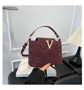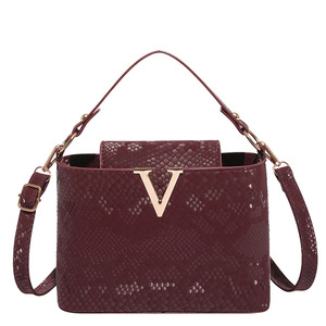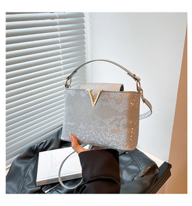 大容量新款纯色蛇纹2025夏季休闲字母五金质感手提单肩斜挎小方包