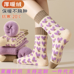 毛圈袜子女加厚中筒袜抗起球秋冬季厚款保暖毛巾底地板袜一件代发