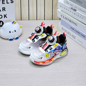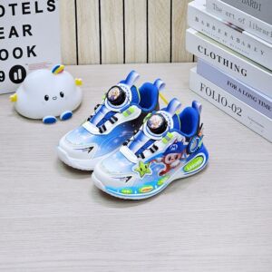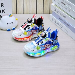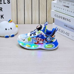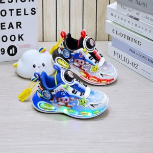 跑马灯炫酷男童跑鞋2025秋季卡通旋转纽扣轻底男孩皮面休闲运动鞋
