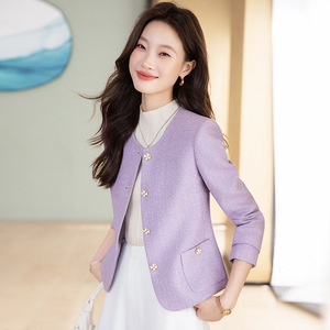 浅紫色小西装女春秋季洋气小个子西装外套时尚休闲小香风长袖西服