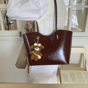 复古时尚油蜡皮托特包女2025新款韩版通勤百搭腋下包大容量单肩包