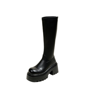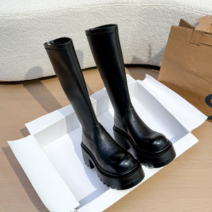 黑色长筒靴女今年流行的超火女士小个子春夏爆款高筒靴骑士长靴子