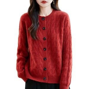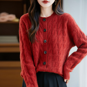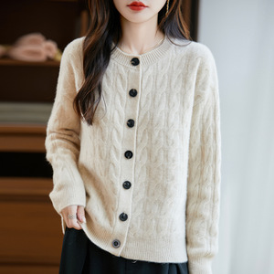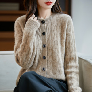 厂家批发2025秋冬100%羊毛七针加厚大麻花黑扣开衫扭花羊毛衫现货