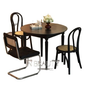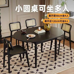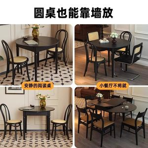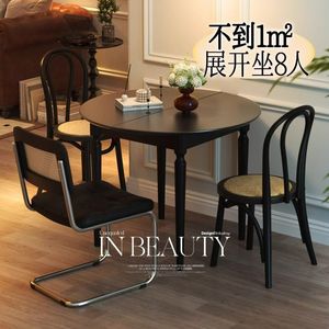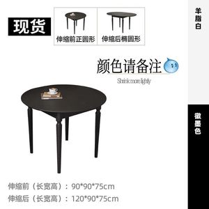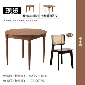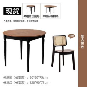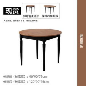 中古风复古全实木伸缩餐桌法式折叠椭圆形小户型家用桌子小型饭桌