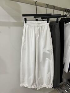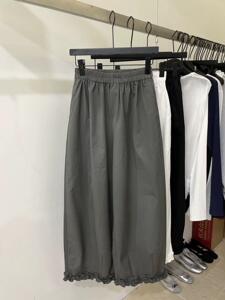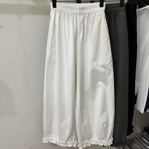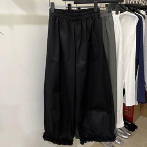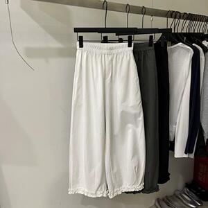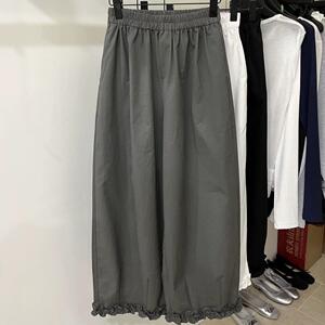 花边高腰阔腿裤女2025春秋季新款韩系松紧腰显瘦直筒灯笼休闲裤