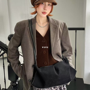 小众设计复古高质感翻毛皮褶皱包2025秋冬新款通勤百搭斜挎手提包