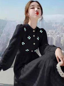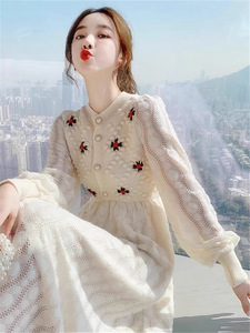 秋季新款法式温柔风裙子高级感精致绝美减龄收腰显瘦针织连衣裙