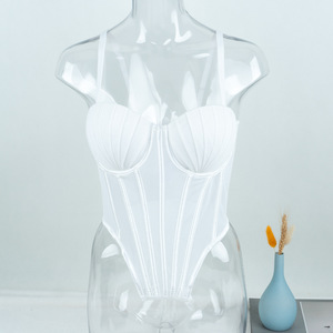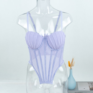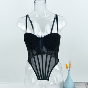 美华新品跨境高级感网纱蕾丝塑性美背内衣外穿辣妹鱼骨抹胸女薄款