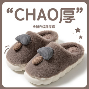 秋冬新款加厚保暖棉拖鞋女室内居家软底情侣棉鞋耐磨防滑毛毛拖男