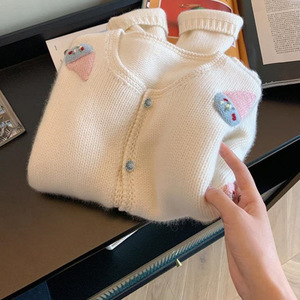 日系秋冬新款感宽松软糯长袖上衣外套洋气减龄领针织开衫毛衣女