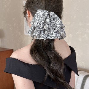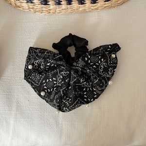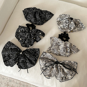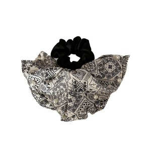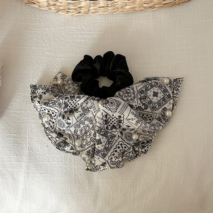 黑白腰果印花双层裙摆发圈复古钉珠点缀马尾发绳头花绑发时尚皮筋