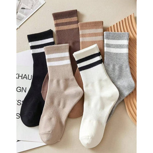 袜子女中筒袜春秋款长筒条纹袜脚底防滑二杠学院风外穿运动潮流袜