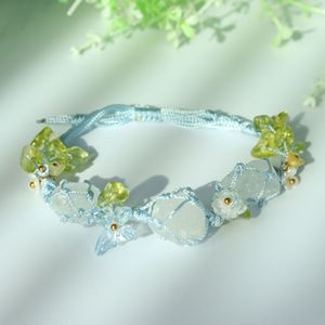 新中式莫奈花园蝴蝶碎石手链编织手绳森系macrame水晶原石手链编