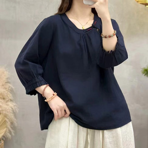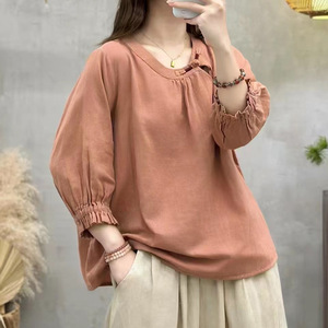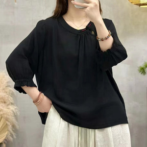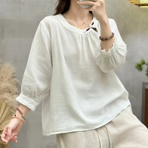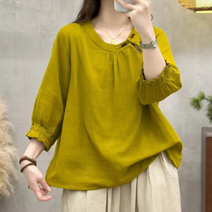 双层棉纱盘扣女士衬衫宽松休闲百搭长袖衬衣上衣女装