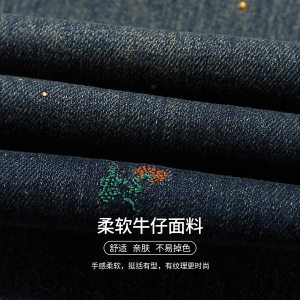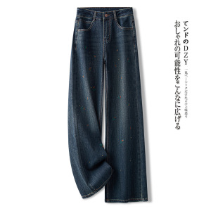 高端复古蓝阔腿牛仔裤女秋季2025新款烫钻花朵刺绣直筒宽松拖地裤