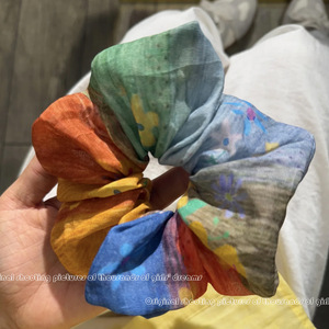 波西米亚风文艺复古原创不规则拼接苎麻手工大肠发圈绿蓝黄色发圈