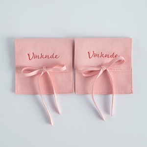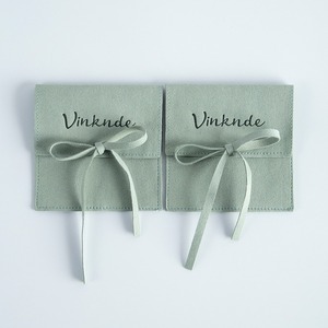 方形绒面首饰收纳袋珠宝首饰品包装翻盖系绳定制超纤仿皮革绒布袋