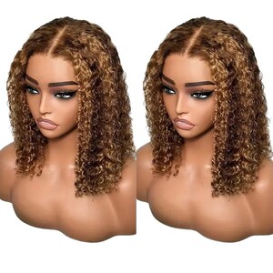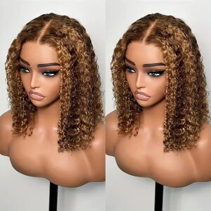 高亮色短波波头假发,深波浪13x4蕾丝前额化纤假发,渐变色