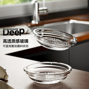蘸料碟透明玻璃研磨磨蒜研磨姜蒜调味碟家用多功能小菜调味料碟子