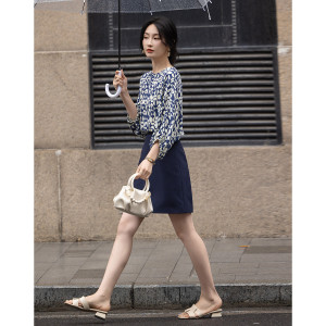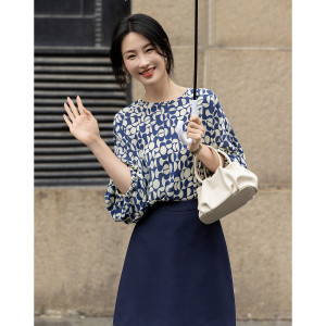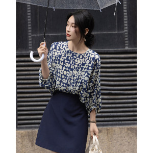 2025夏季新款设计感线条建筑印花衬衫舒滑复合丝花瑶衬衣女上衣