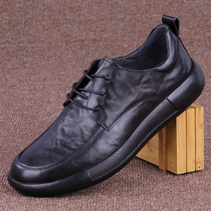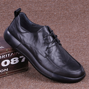外贸休闲皮鞋男真皮春夏新款透气全牛皮实心软底系带商务男士皮鞋