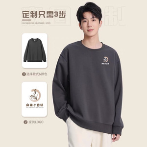 新款320克华棉圆领卫衣定制重磅广告衫纯色百搭宽松长袖上衣班服