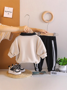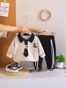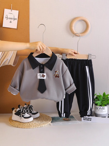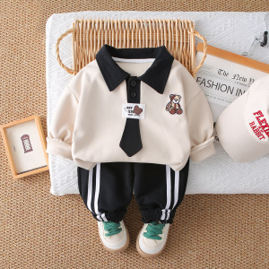 五小七童装春秋2025新款儿童套装0-4岁男童贴标熊翻领卫衣两件套