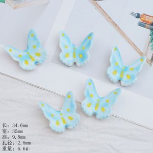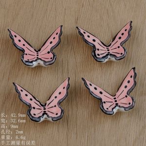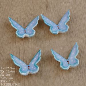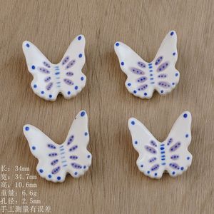 景德镇手绘陶瓷蝴蝶配件饰品串珠手工DIY项链吊坠材料散珠货源