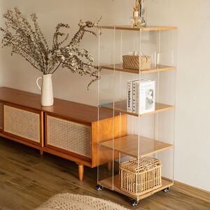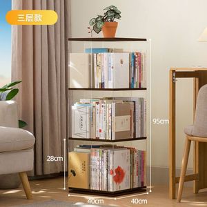 初色亚克力创意旋转书架家用书房展示柜实木落地置物架转角书柜