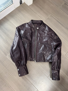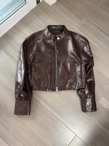 复古真皮绵羊皮油蜡2025秋冬新款短皮衣小立领小个子机车夹克外套