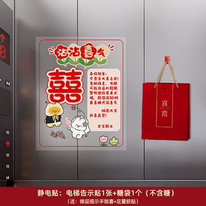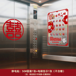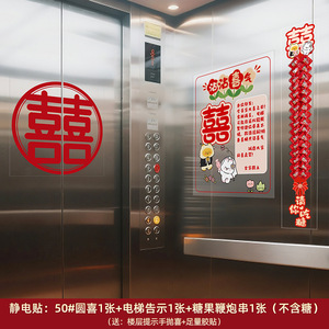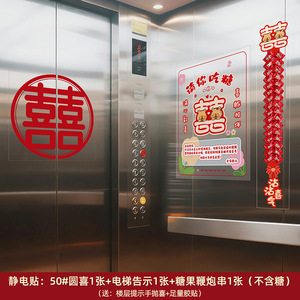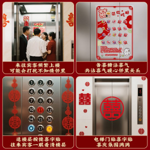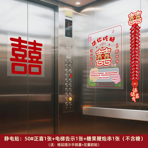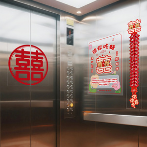 结婚电梯告示喜字贴电梯门囍字喜事海报布置装饰贴纸婚庆用品大全