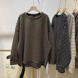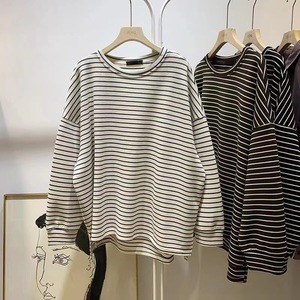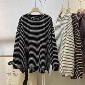 特大码240斤欧货爆款条纹长袖t恤女2025新款早秋季宽松打底衫上衣