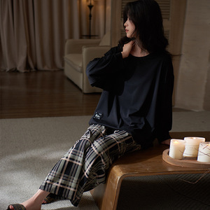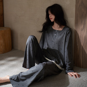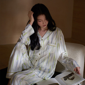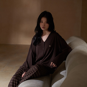 莫代尔高档时尚睡衣女士春秋长袖开衫轻奢设计感家居服纯色可外穿