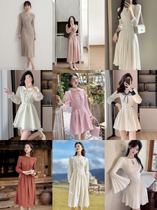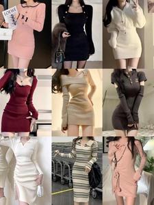 纯欲辣妹初秋连衣裙修身女短裙小个子针织包臀裙学院风长袖女装