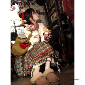 W9Q圣诞年味!!!可爱半身裙A字裙女秋冬蕾丝拼接裙子I