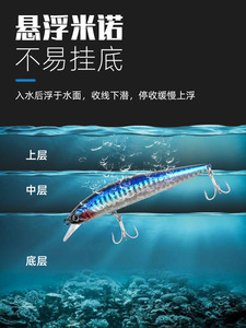 黑金钢防锈钩远投悬停悬浮米诺路亚饵死飞响珠仿生硬饵假鱼饵