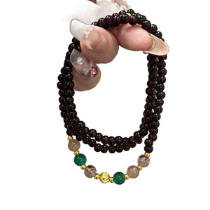 玻璃无镶嵌中式三圈好运石榴红手串复古气质编织闺蜜手链